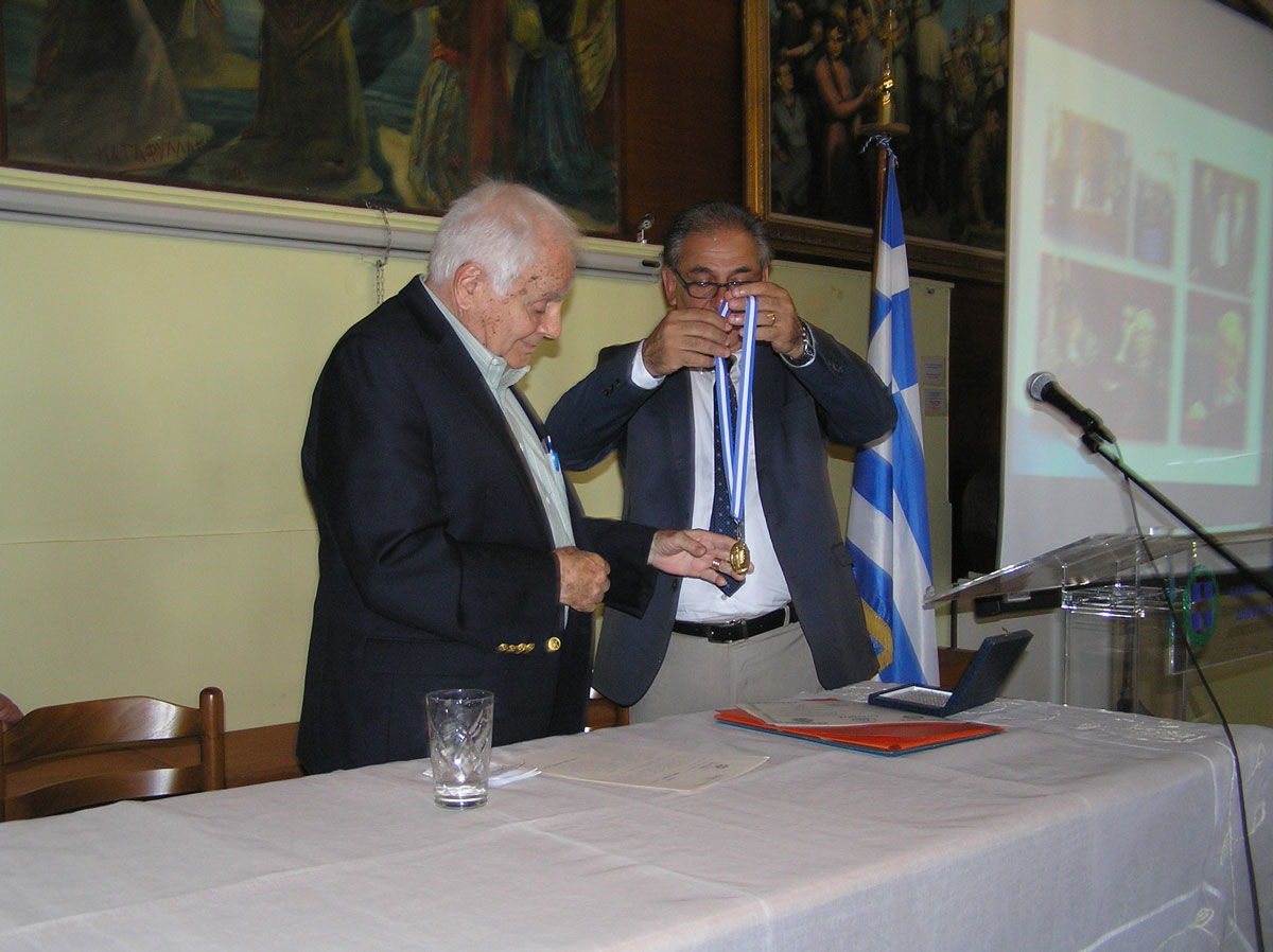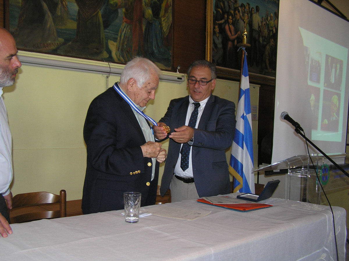 Ο κος Δήμαρχος παρέδωσε στον τιμώμενο το Χρυσό μετάλλιο της Πόλης, όπου απεικονίζεται η Καλυμνιακή λύρα καθώς και τιμητικό έπαινο σε πάπυρο. Επίσης του επέδωσε και αντίγραφο από τά αρχεία του Δήμου στο οποίο φαίνεται καταγεγραμμένη η οικογενειακή μερίδα Μπιλληράκη και συγκεκριμένα του πατέρα του Μανώλη και της μητέρας του το γένος Πικραμένου.